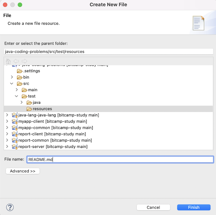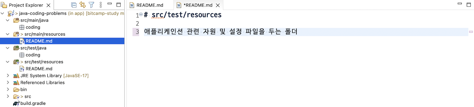 ㄴ src/test/resources 경로에 README.md 라는 새로운 파일 생성