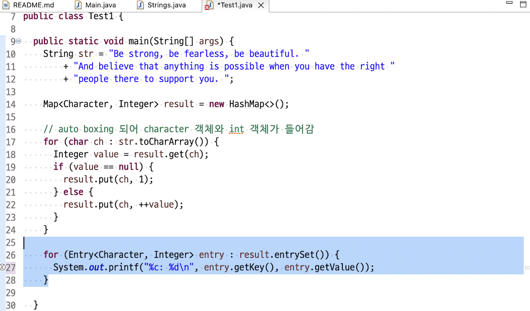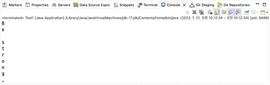 ㄴ 복사해둔 텍스트 붙여넣고 해당 문자열을 char 타입으로 char 배열에 담아서 출력해보기