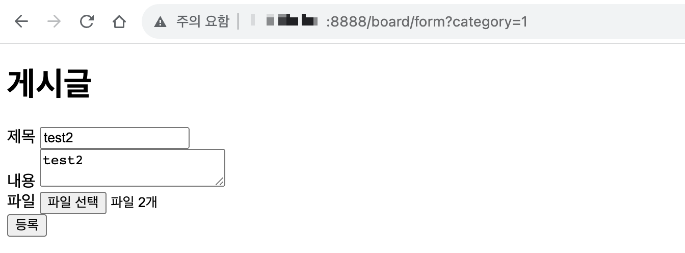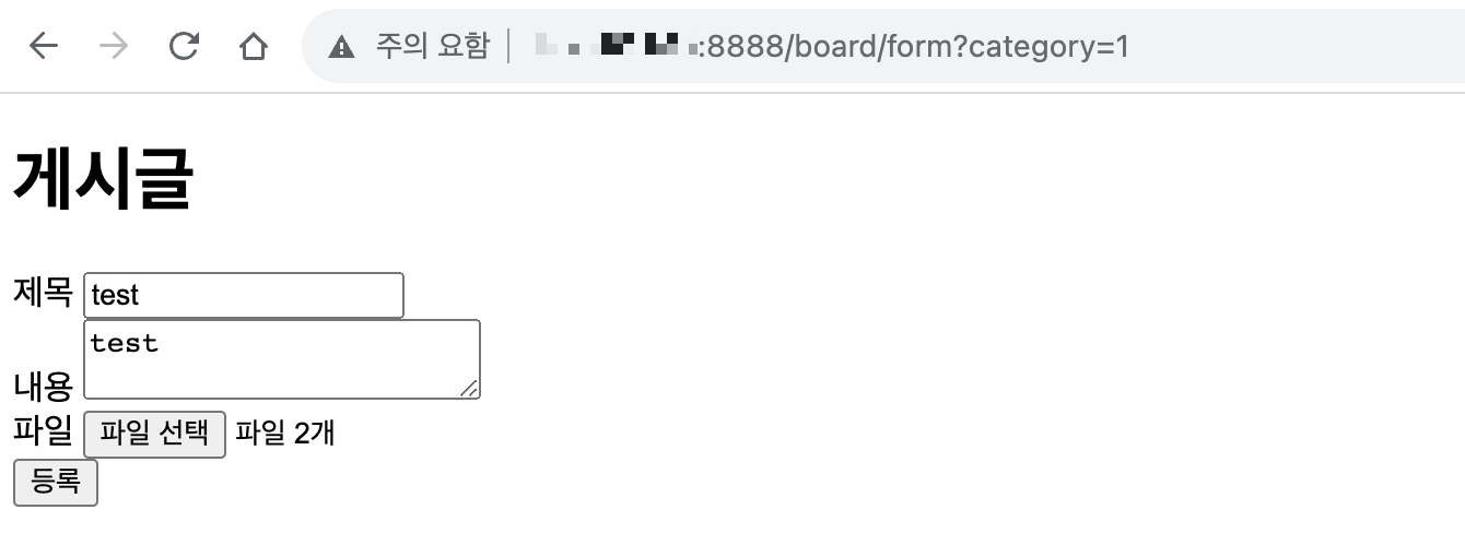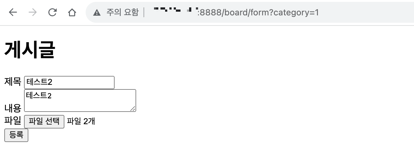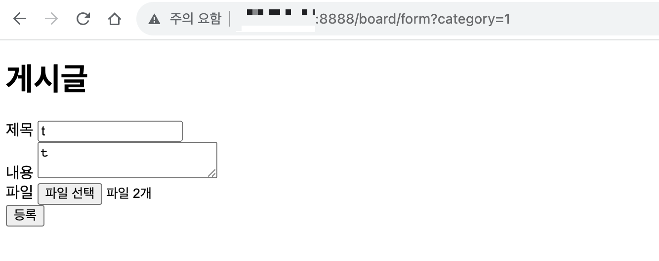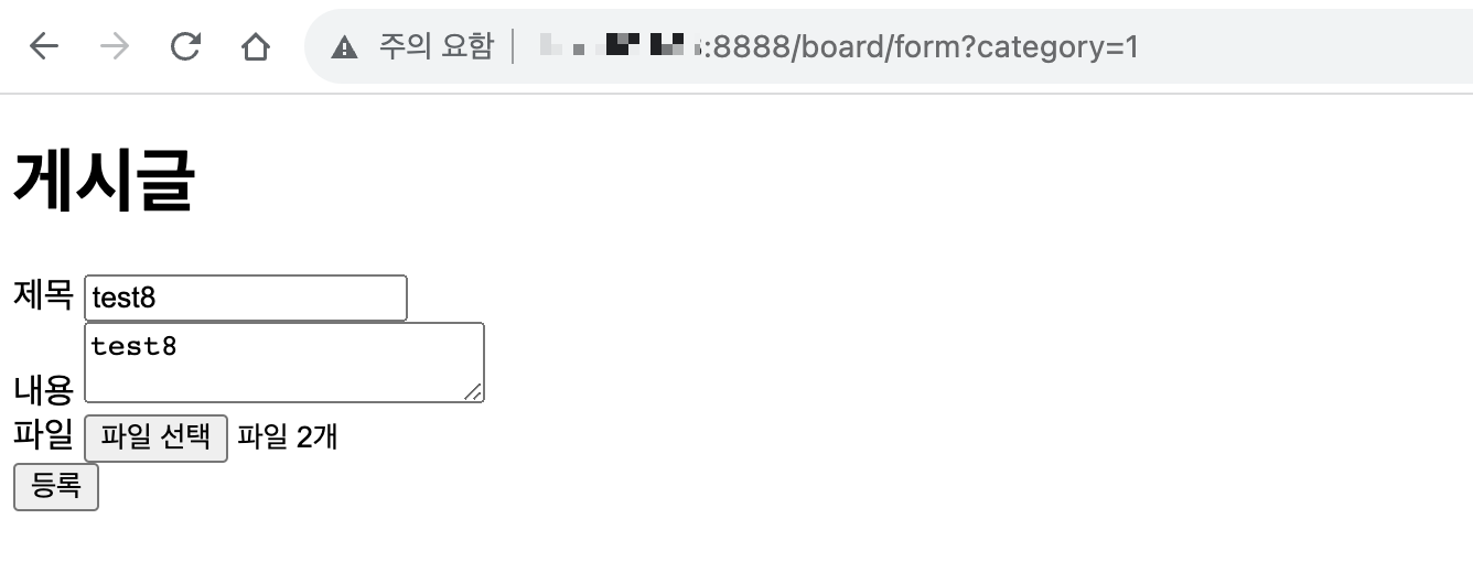 첨부 파일 여러개 선택하여 새 글 등록 시도