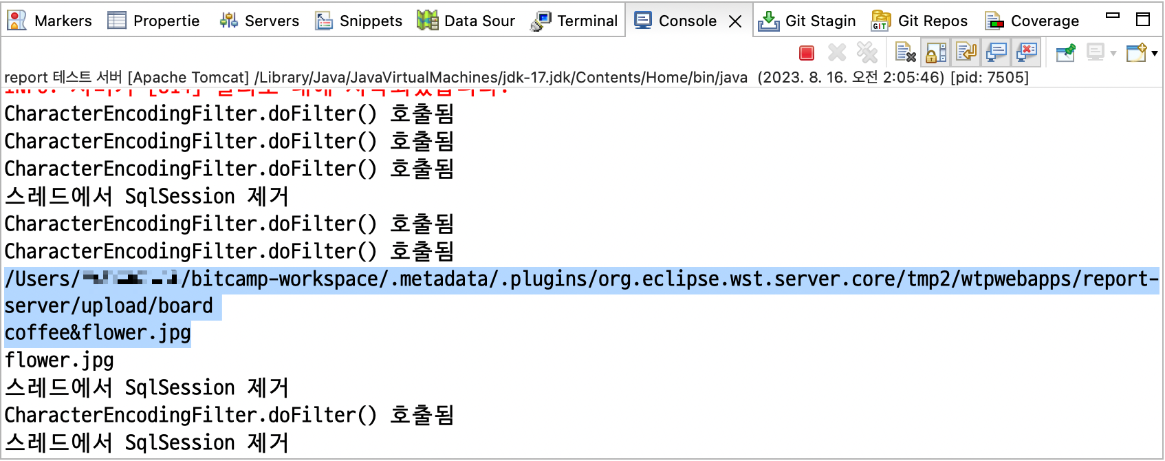 ㄴ wtpwebapp > report-server 폴더에 upload 폴더 생성됨을 확인