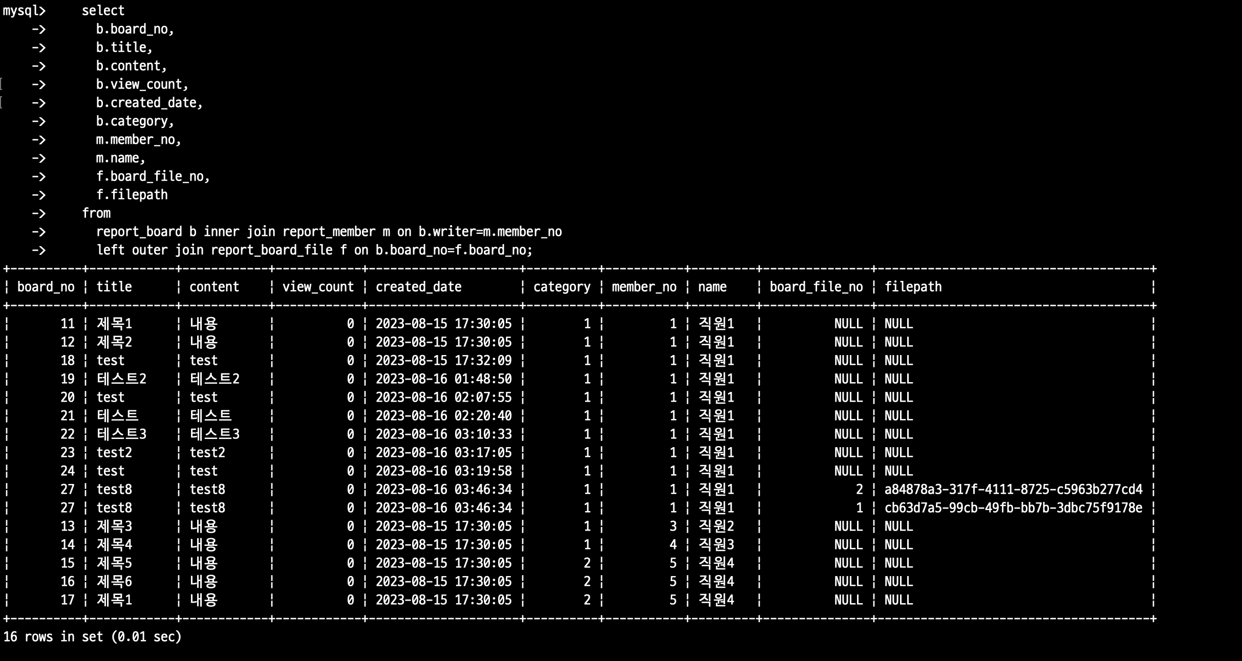 ㄴ mysql 을 실행한 터미널에서 확인 시 filepath 가 정상적으로 저장됨을 확인