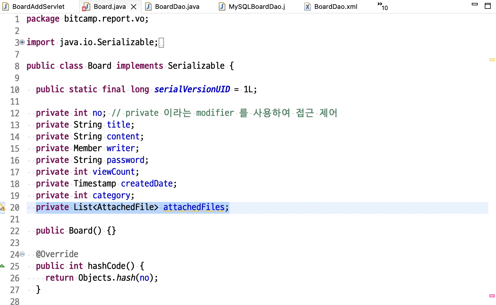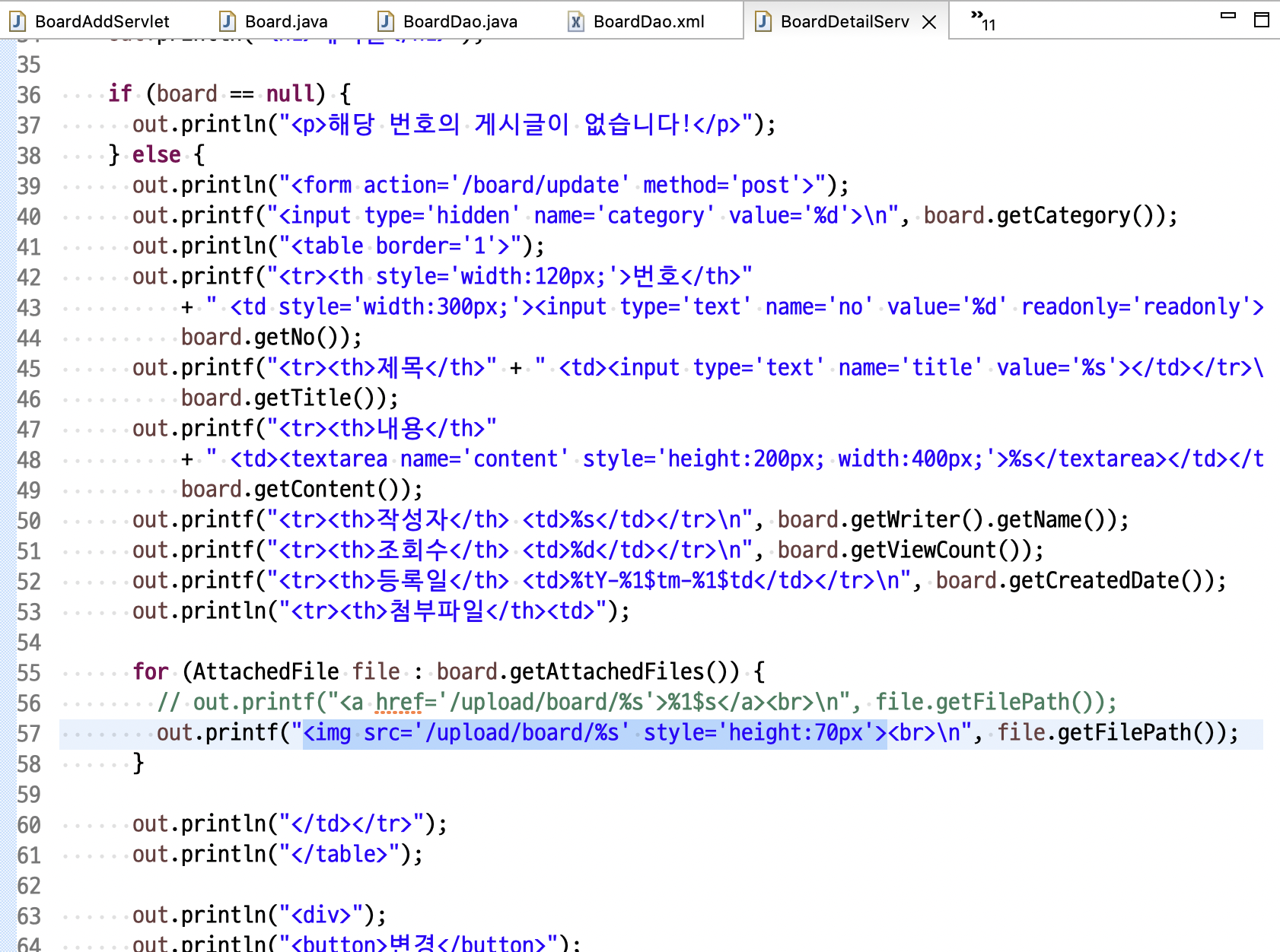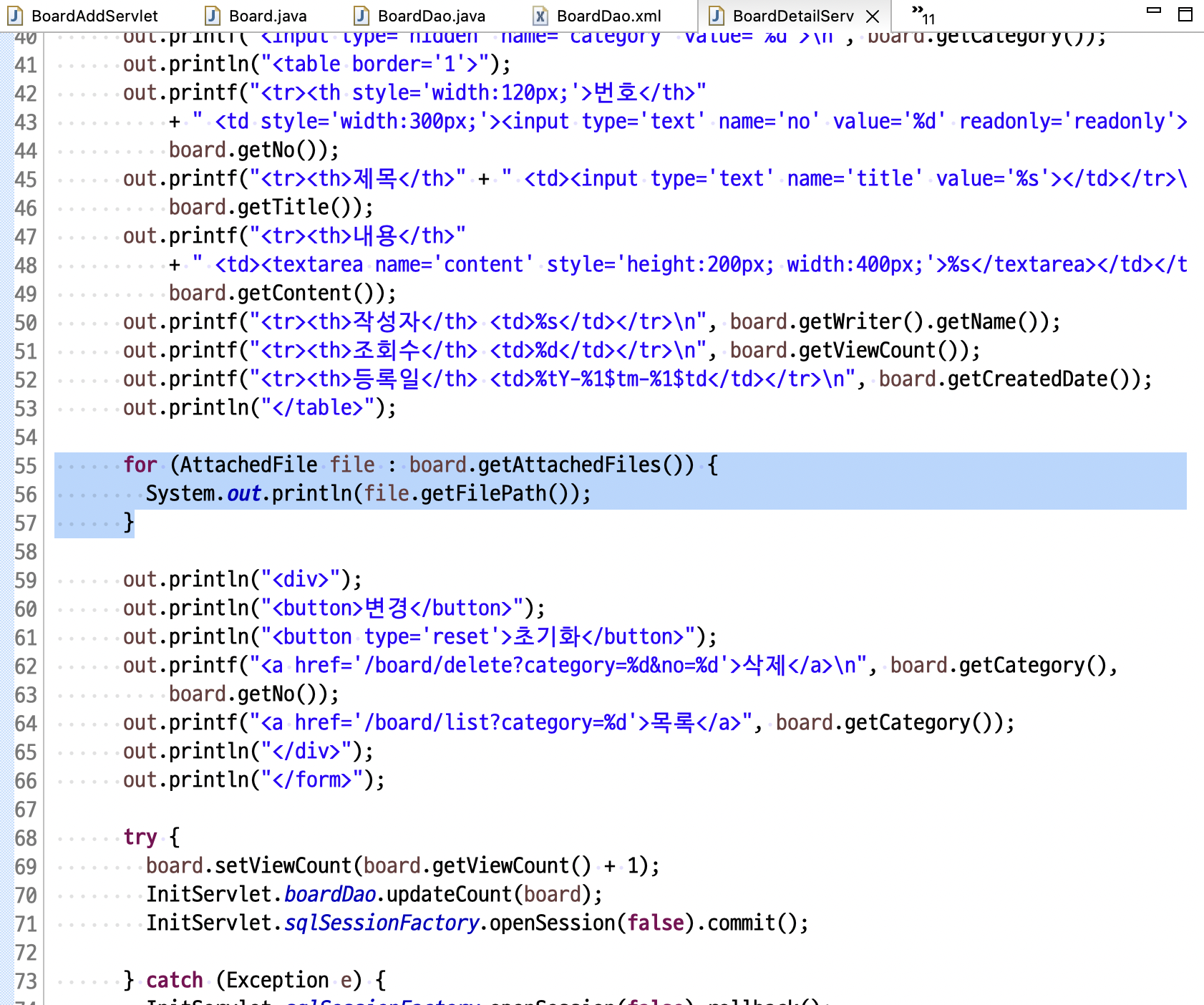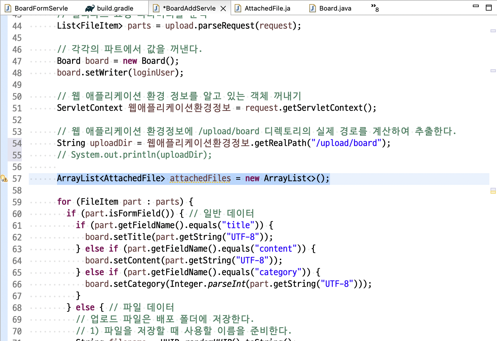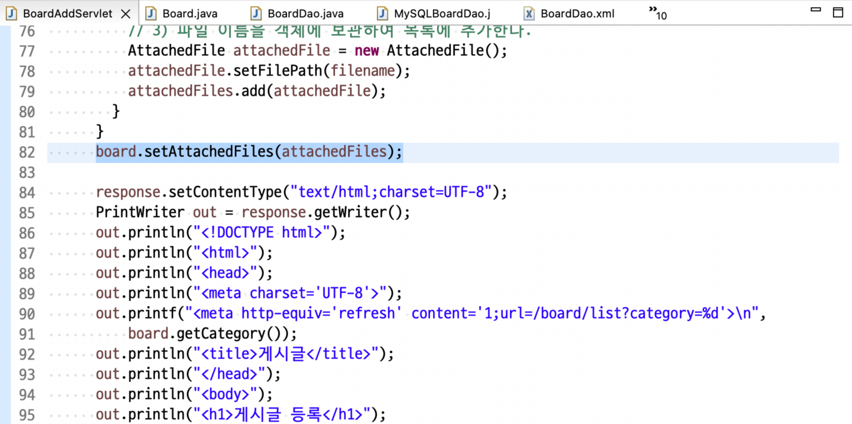 ㄴ board 객체에 attachedFiles라는 ArrayList<AttachedFile>을 설정하도록 함