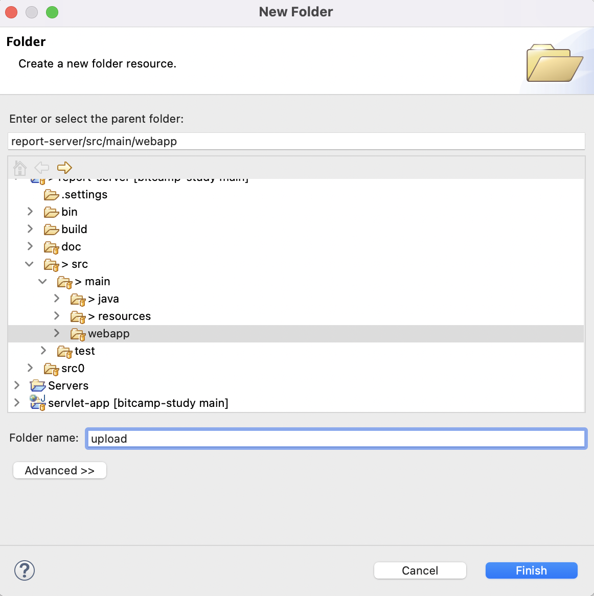 ㄴ webapp 폴더에 upload 라는 이름의 폴더 생성