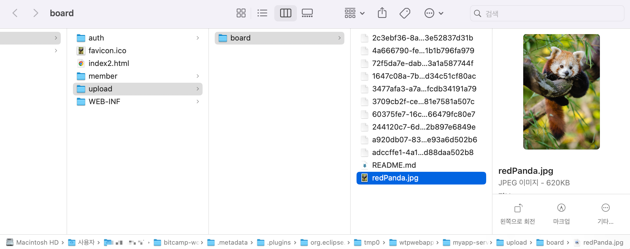 ㄴ upload 라는 폴더에 board 라는 이름의 폴더 생성