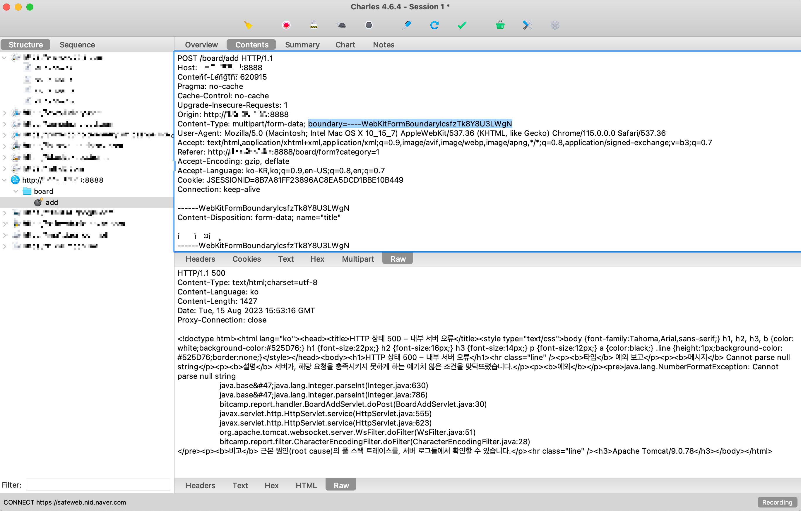 ㄴ Chales Proxy 에서 확인 시 boundary=---- ... 추가됨을 확인